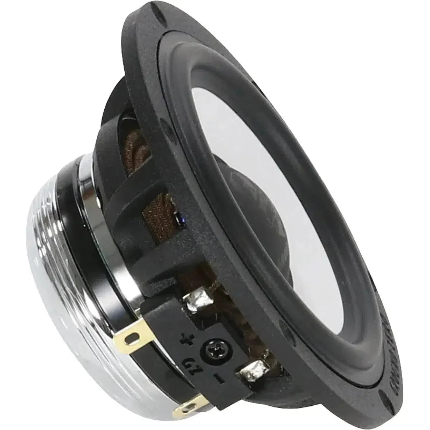 El Plutonium GZPM 80SQ-C, un altavoz de medios de 3 pulgadas de Ground Zero, es un altavoz de medios de alta gama de 80 mm que ofrece la más alta calidad de sonido gracias a su cono de aluminio con revestimiento cerámico. Con un motor de neodimio para una alta eficiencia y linealidad, optimizado por Klippel® y presentado en una cesta de aluminio fundido a presión GZ-Design. Además, cuenta con una rejilla protectora Hexagon-NRG GZ-Design y terminales de soldadura chapados en oro. Cabe destacar especialmente su alto manejo de potencia, amplia respuesta de frecuencia y alta eficiencia. Simplemente ofrece lo que espera de un altavoz de rango medio de primera clase.
