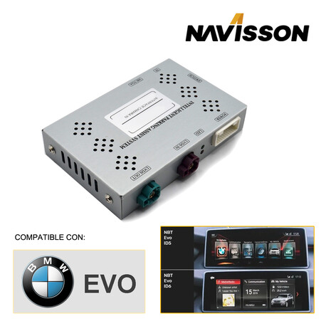 Esta interface permite añadir una cámara trasera al monitor original de un vehiculo BMW con sistema EVO de origen. Agregando líneas de estacionamiento activas y se integra con los sensores de estacionamiento del automóvil para proporcionar una visualización del estacionamiento, sin perder ninguna función original.