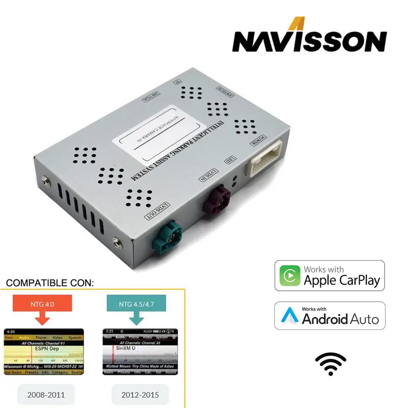Navisson le ofrece una gama de interfaces que le permiten añadir la función Carplay o Android Auto a su unidad original y brindándole la opción de conectar una cámara de ayuda al estacionamiento que se mostrara tambien su pantalla de original. Ésta es una excelente manera de agregar la asistencia de estacionamiento que tanto necesita su radio de fábrica. Lea atentamente la descripción del listado, ya que pueden aplicarse codificación y variantes con la radio de fábrica.