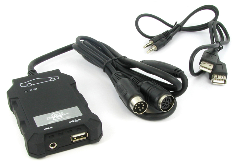 Se conecta directamente a la parte posterior de su estéreo del coche original y le permite conectar cualquier dispositivo de audio portátil como por ejemplo Disco duro USB, iPod, MiniDisk, reproductor MP3, PS2 o incluso un ordenador portátil..