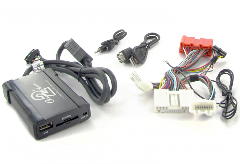 Se conecta directamente a la parte posterior de su estéreo del coche original y le permite conectar cualquier dispositivo de audio portátil como por ejemplo Disco duro USB, iPod, MiniDisk, reproductor MP3, PS2 o incluso un ordenador portátil..