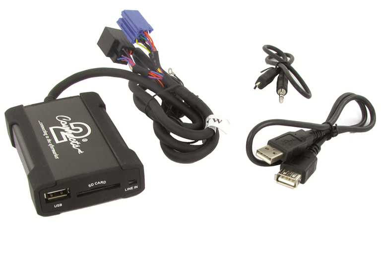 Se conecta directamente a la parte posterior de su estéreo del coche original y le permite conectar cualquier dispositivo de audio portátil como por ejemplo Disco duro USB, iPod, MiniDisk, reproductor MP3, PS2 o incluso un ordenador portátil..
