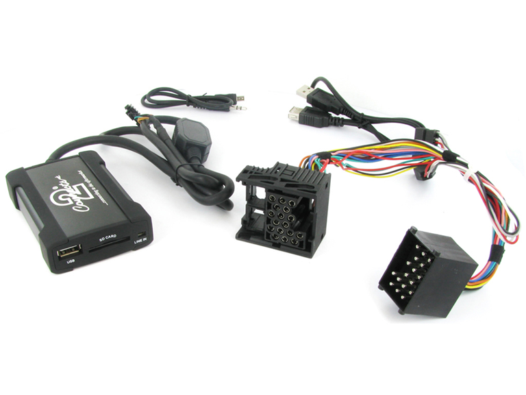 Se conecta directamente a la parte posterior de su estéreo del coche original y le permite conectar cualquier dispositivo de audio portátil como por ejemplo Disco duro USB, iPod, MiniDisk, reproducto r MP3, PS2 o incluso un ordenador portátil..