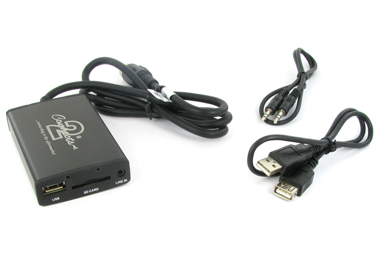 Se conecta directamente a la parte posterior de su estéreo del coche original y le permite conectar cualquier dispositivo de audio portátil como por ejemplo Disco duro USB, iPod, MiniDisk, reproductor MP3, PS2 o incluso un ordenador portátil..