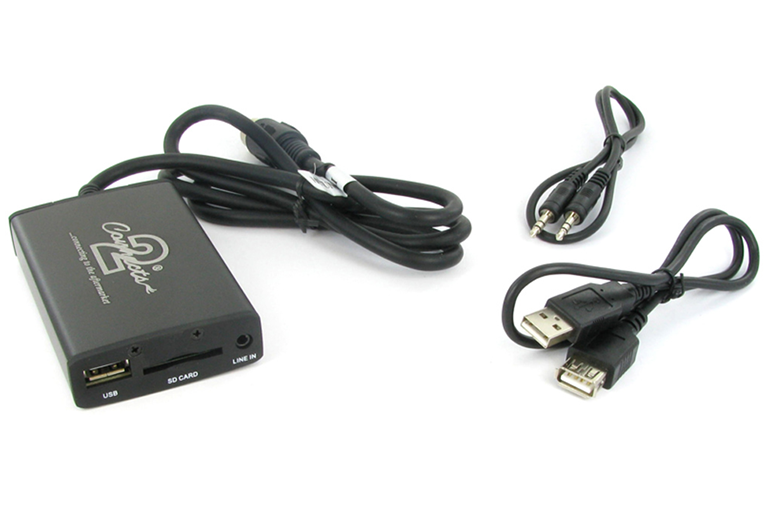 Se conecta directamente a la parte posterior de su estéreo del coche original y le permite conectar cualquier dispositivo de audio portátil como por ejemplo Disco duro USB, iPod, MiniDisk, reproductor MP3, PS2 o incluso un ordenador portátil..