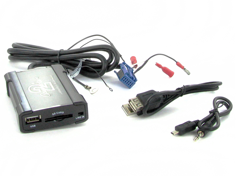 Se conecta directamente a la parte posterior de su estéreo del coche original y le permite conectar cualquier dispositivo de audio portátil como por ejemplo Disco duro USB, iPod, MiniDisk, reproductor MP3, PS2 o incluso un ordenador portátil..