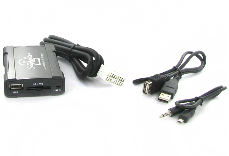 Se conecta directamente a la parte posterior de su estéreo del coche original y le permite conectar cualquier dispositivo de audio portátil como por ejemplo Disco duro USB, iPod, MiniDisk, reproductor MP3, PS2 o incluso un ordenador portátil..