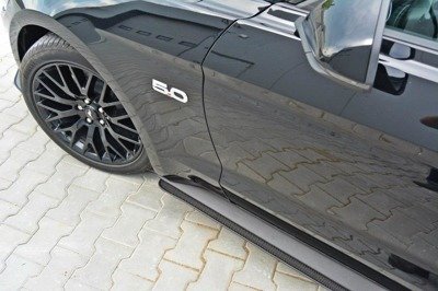These racing side skirts diffusers aimed at Ford Mustang GT MK6 are innovative products that can be produced from carbon or ABS (CNC). Carbon is damage-resistant and light, and also has a very unique surface. ABS (CNC), on the other hand, is defined by resilience to harsh atmospheric conditions, as well, as durability. Clear instructions and a mounting kit come included with this product. The side skirts are also topped with a layer that secures them against UV radiation.