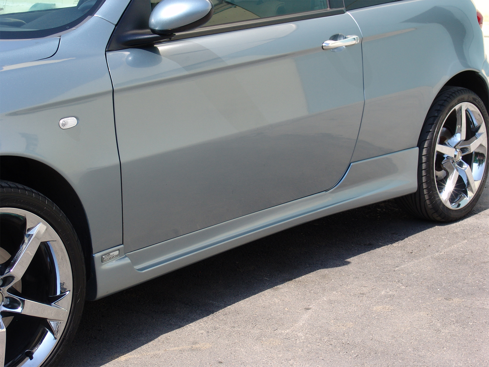 Faldones Laterales 3 Puertas Alfa Romeo 147 fabricados en Material Plástico ABS de alta calidad en Máquina Termoformadora de última tecnología con fácil y excelente montaje. El material plástico ABS que utilizamos para la fabricación de productos viene en negro brillante con superficie antirrayas y protección UV. El producto también tiene una lámina protectora que sugiere pelar antes de colocarlo.