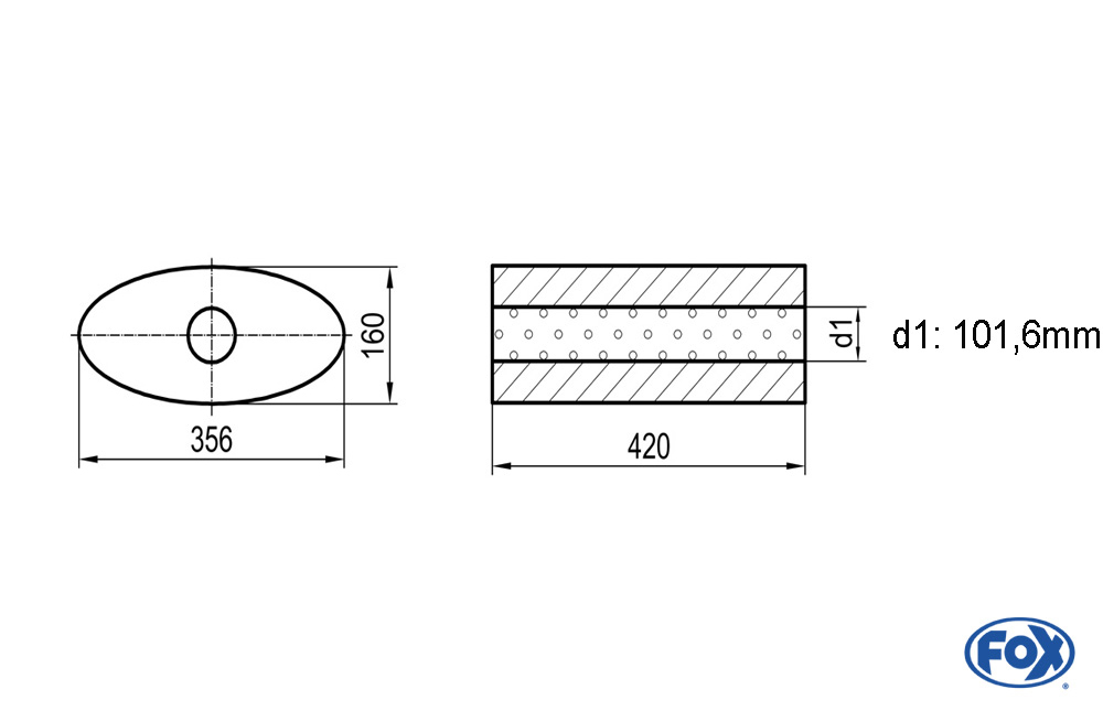 Fox Exhaust universal-silencer oval without pipe union – blank 818 d1Ø 101,6mm lenght: 420mm