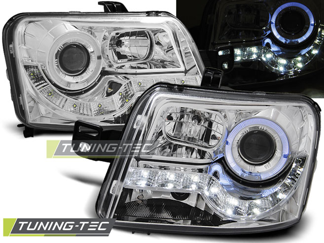 Faros proyectores con luz LED de estacionamiento y borde de halo. Los modelos desde 2009 tienen enchufes de conexión diferentes. 100% nuevo, vienen en pares (izquierda derecha). Aprobación: E-marked – para legal en la calle. Detalles Luz de posición: LEDLuz intermitente: P21W Luz de cruce: H3 incluida Luz de carretera: H1 incluida Regulación: eléctrica (se incluye regulador eléctrico) LED ANGEL EYES