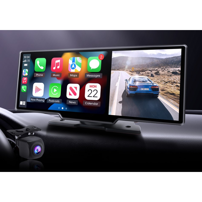 Todo se maneja a través del control de voz inteligente Siri o OK Google o en el monitor de pantalla táctil de 10 “, que puede montar de forma segura en el tablero, por ejemplo, con un soporte de pie incluido.