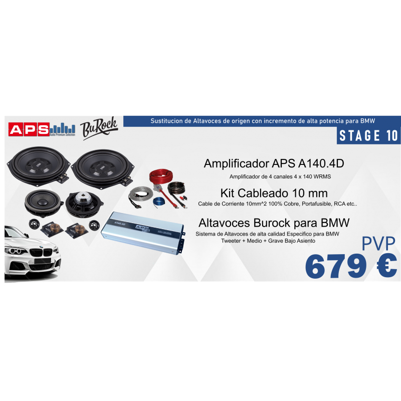 Pack de sonido orientado a mejorar tanto el volumen como la calidad en un BMW, sustituyendo los altavoces del mismo incluyen altavoces de agudos que en muchos modelos no se incluyen de origen