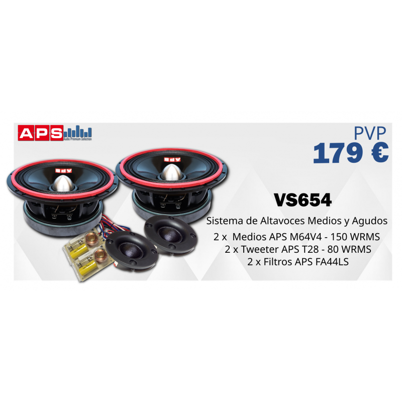 Formado por el Medio APS M64V4, Tweeter APS T28 y filtraje realizado a medida para este sistema (FA44LS).