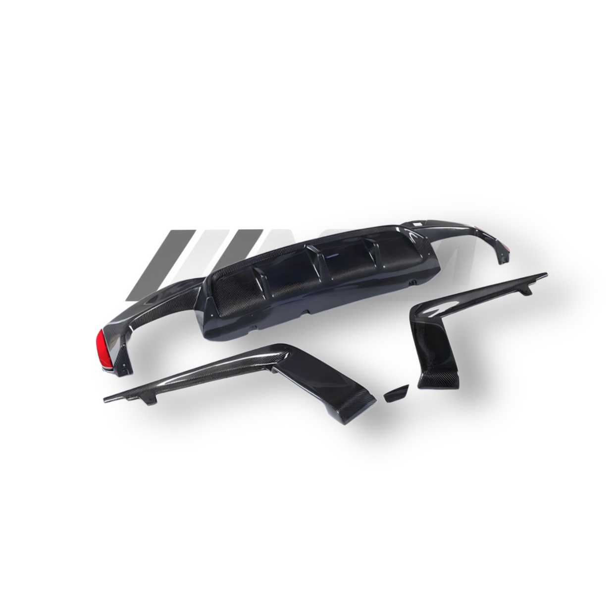 - ASM presenta un difusor de carbono meticulosamente elaborado, fabricado con fibra de carbono genuina de primera calidad, diseñado específicamente para adaptarse perfectamente al BMW F90 M5.
