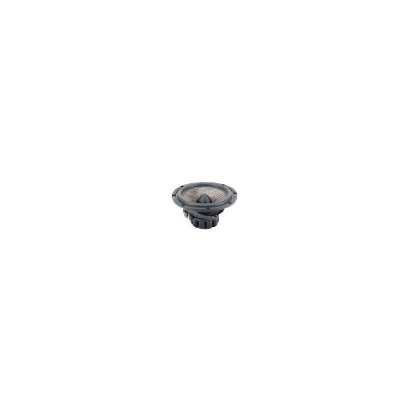Este woofer de alta potencia cuenta con una cesta de aluminio fundido a presión y una membrana de fibra de carbono 3K ultra rígida. Incluye un marco de NBR y una araña doble con trenzas integradas, junto a una bobina móvil de 38 mm sobre un formador de fibra de vidrio. Su imán de neodimio de 10 barras de gran tamaño y el conector de fase de aluminio mecanizado aseguran un rendimiento óptimo. Además, el terminal está chapado en oro, y los productos están emparejados a una precisión de +/- 1 dB.